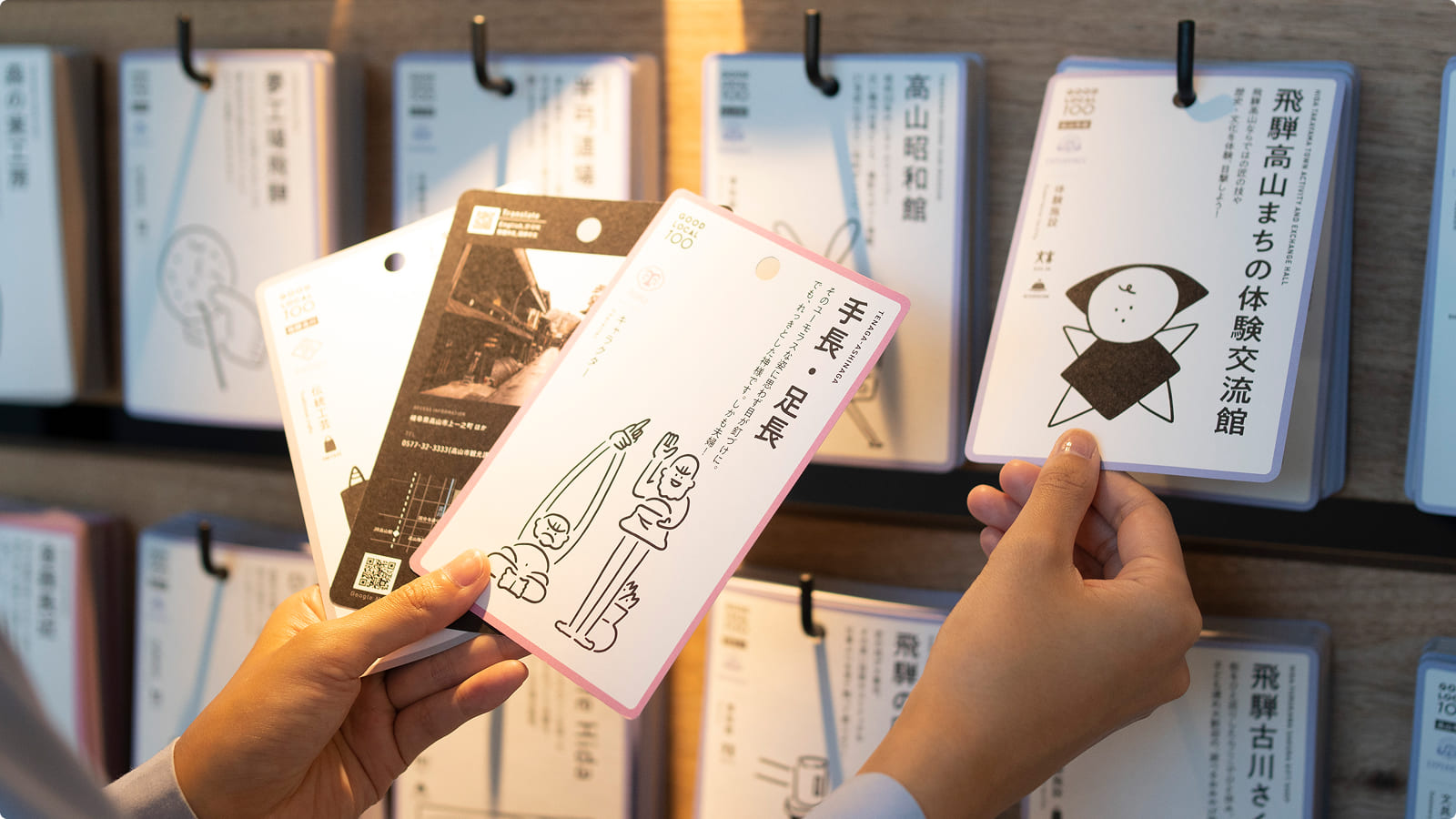 ホテル1階の GOOD LOCAL SQUARE には、その100の魅力を紹介するカードをずらりとご用意しています。