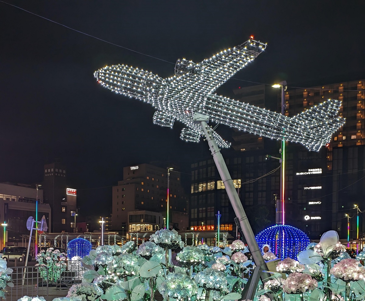 現在、JR成田駅前で成田市制施行70周年記念 JR成田駅前イルミネーション「#ナリタナナイロ」が開催されています。
