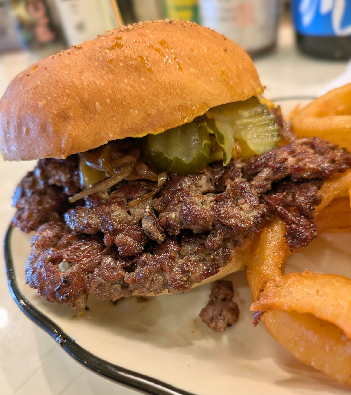 店内にはアメリカンな雰囲気が漂い、ハンバーガーはかなりのボリューム!