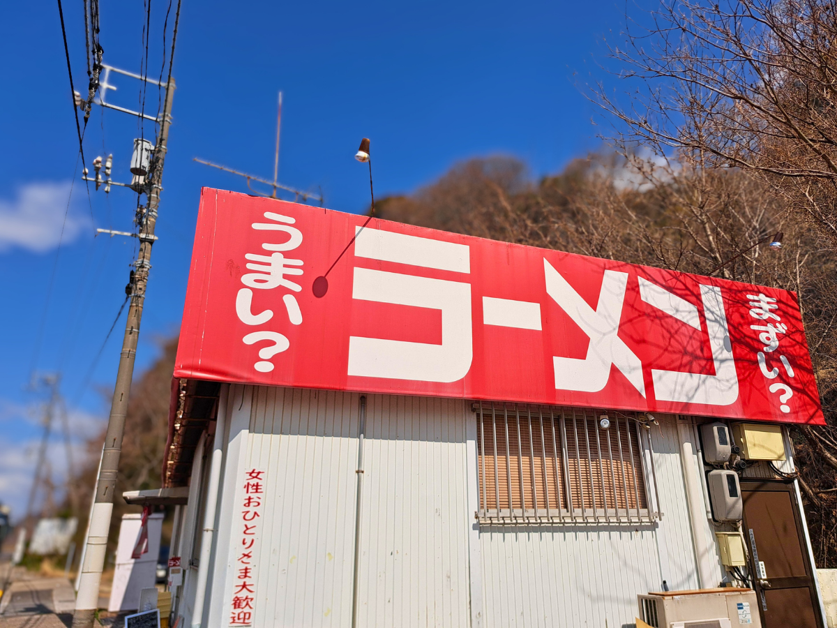 真っ赤な看板に書かれた「うまい?まずい?」の言葉が目を引きますが、結論から言うと“うまい”です。