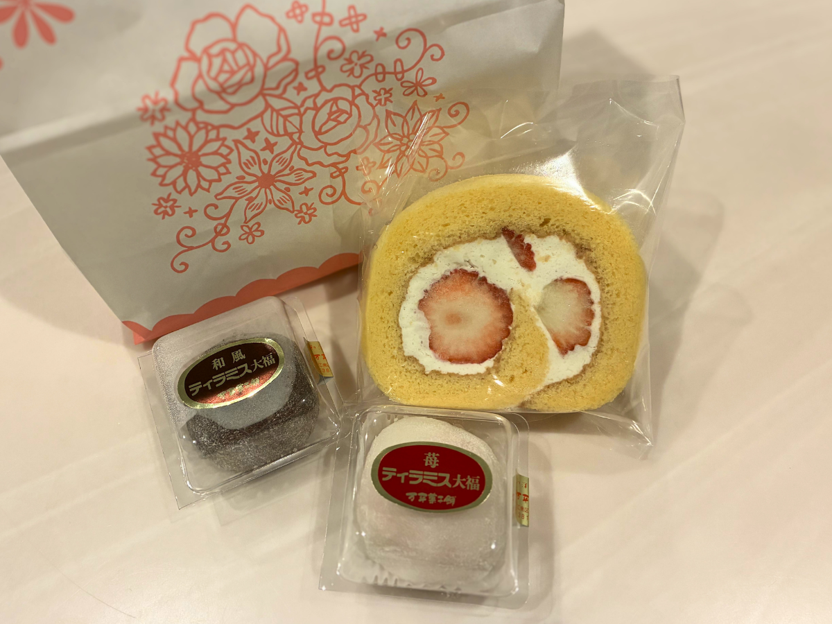 今回いただいたのは、和風ティラミス大福、苺ティラミス大福、そして大江山越後姫ロールの3種類です!
