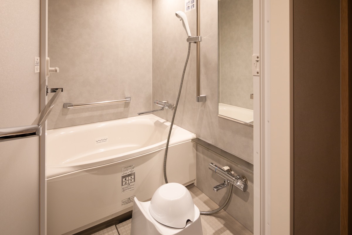 ナノバブルシャワーヘッドや髪にやさしいドライヤーを全室に完備。ヘアアイロン(カール/ストレート)もフロントにご用意しています。