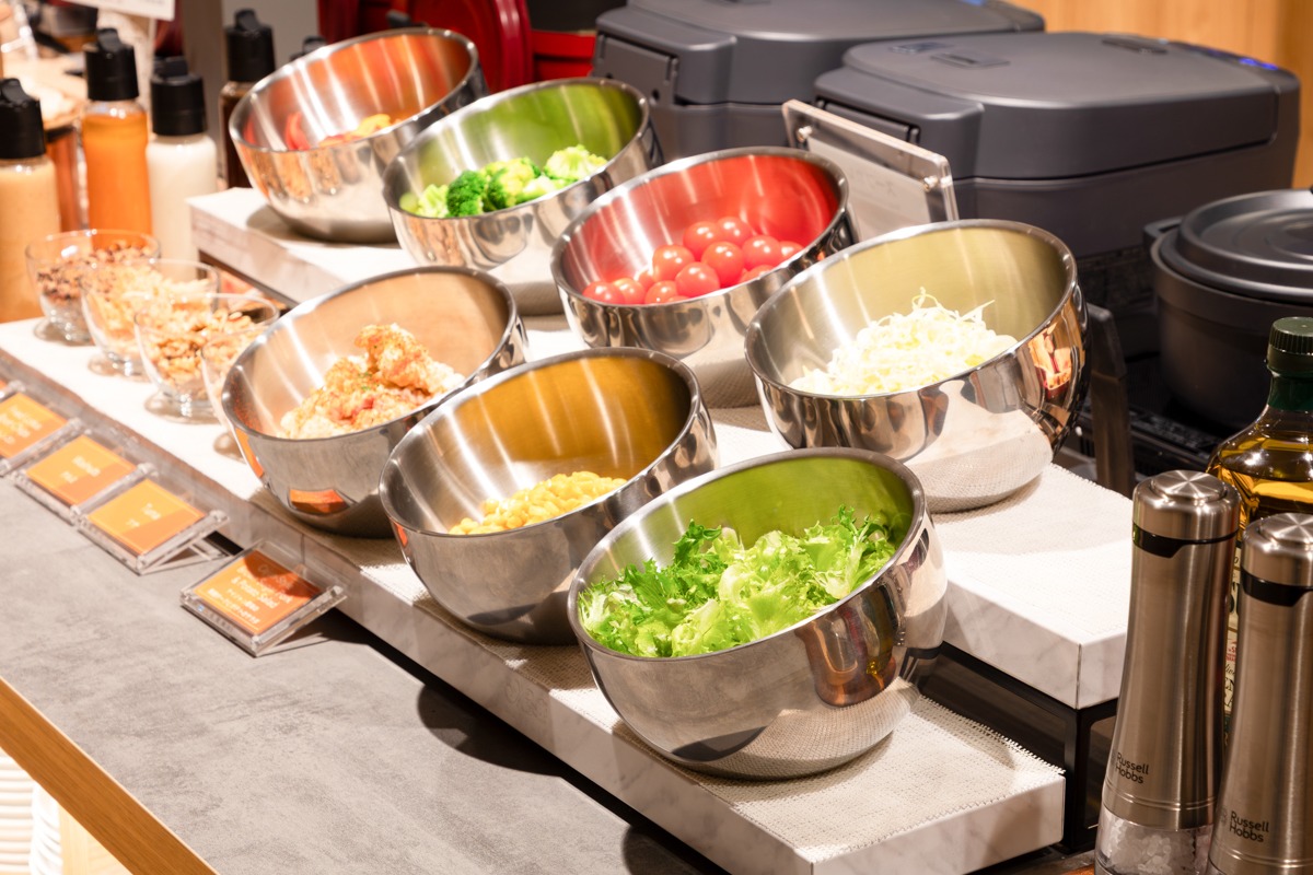 彩り豊かな野菜やフルーツ、トッピングが充実。自由自在に組み合わせて、自分だけのオリジナルサラダ作りにチャレンジ。バリエーション豊かなこだわりのメニューで、わくわくする朝をお楽しみください。