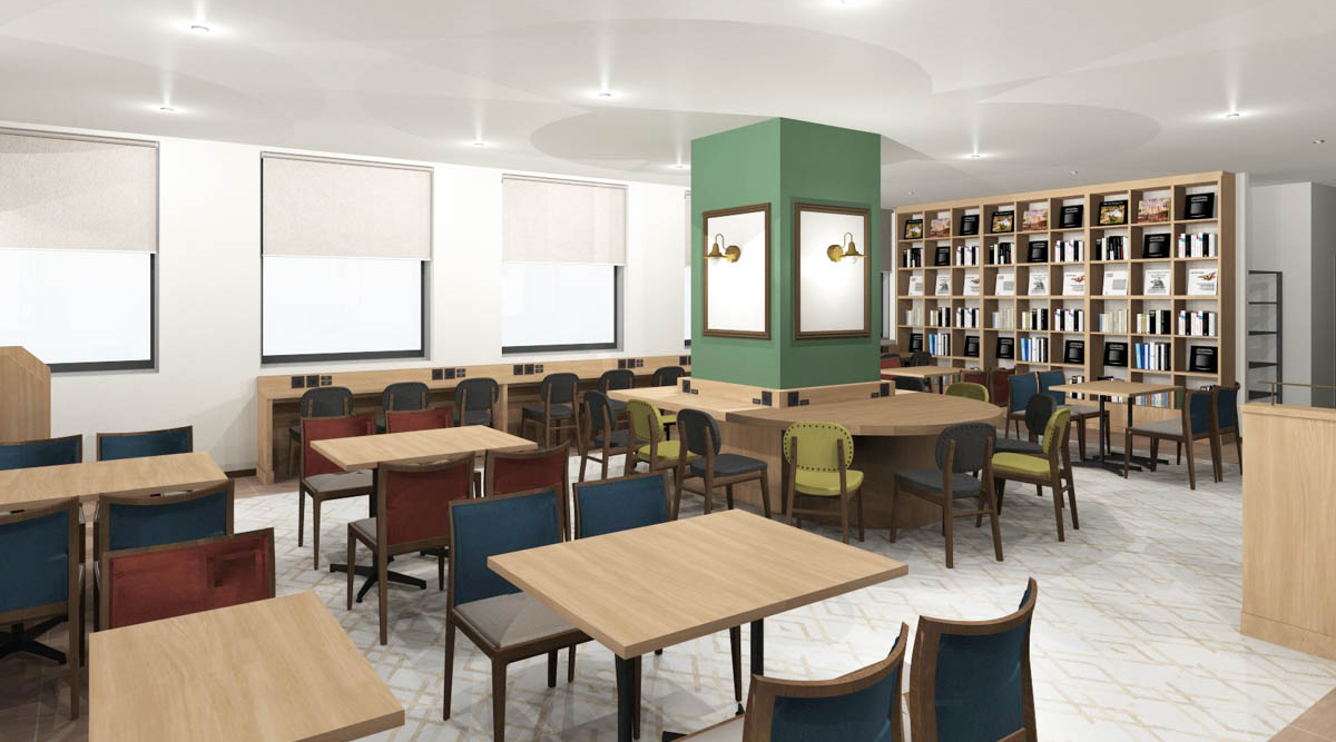 10時から24時まで利用可能なライブラリーカフェなら、チェックイン前やチェックアウト後のコワーキングスペースとしてもご利用いただけます。