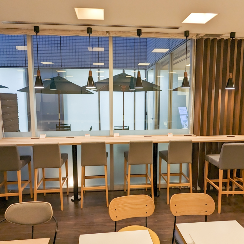 ライブラリーカフェ内では、ドリンクが飲み放題。Free Wi-Fi・充電用コンセントもありノマドワーカーの方にうれしいポイントもたくさん。快適なワークスペースもあり、お仕事や商談のスペースとしてもご利用いただけます。