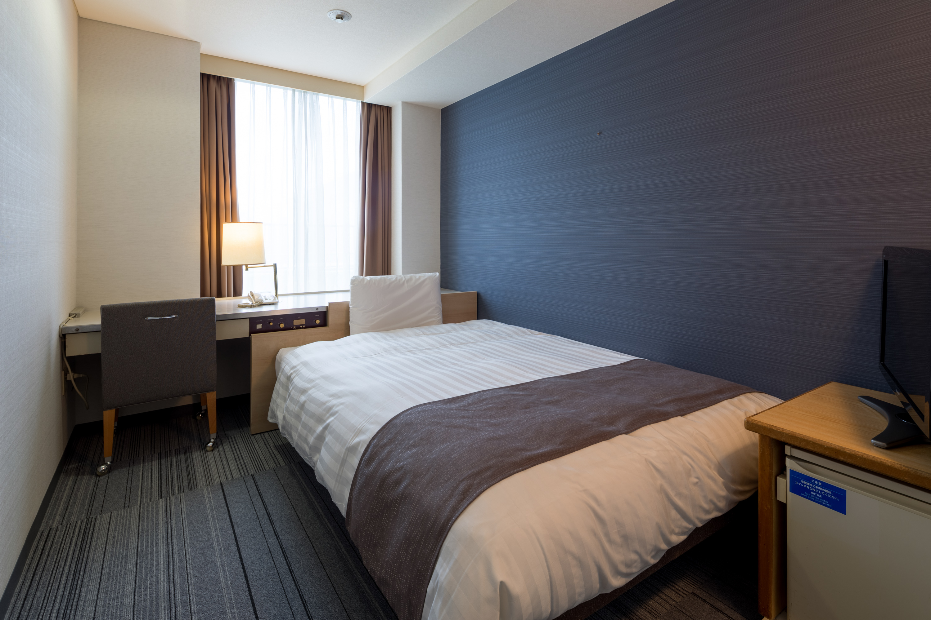 間取りは一例であり、客室によって異なります。すべてのお部屋のベッドが窓側にあるとは限りません。