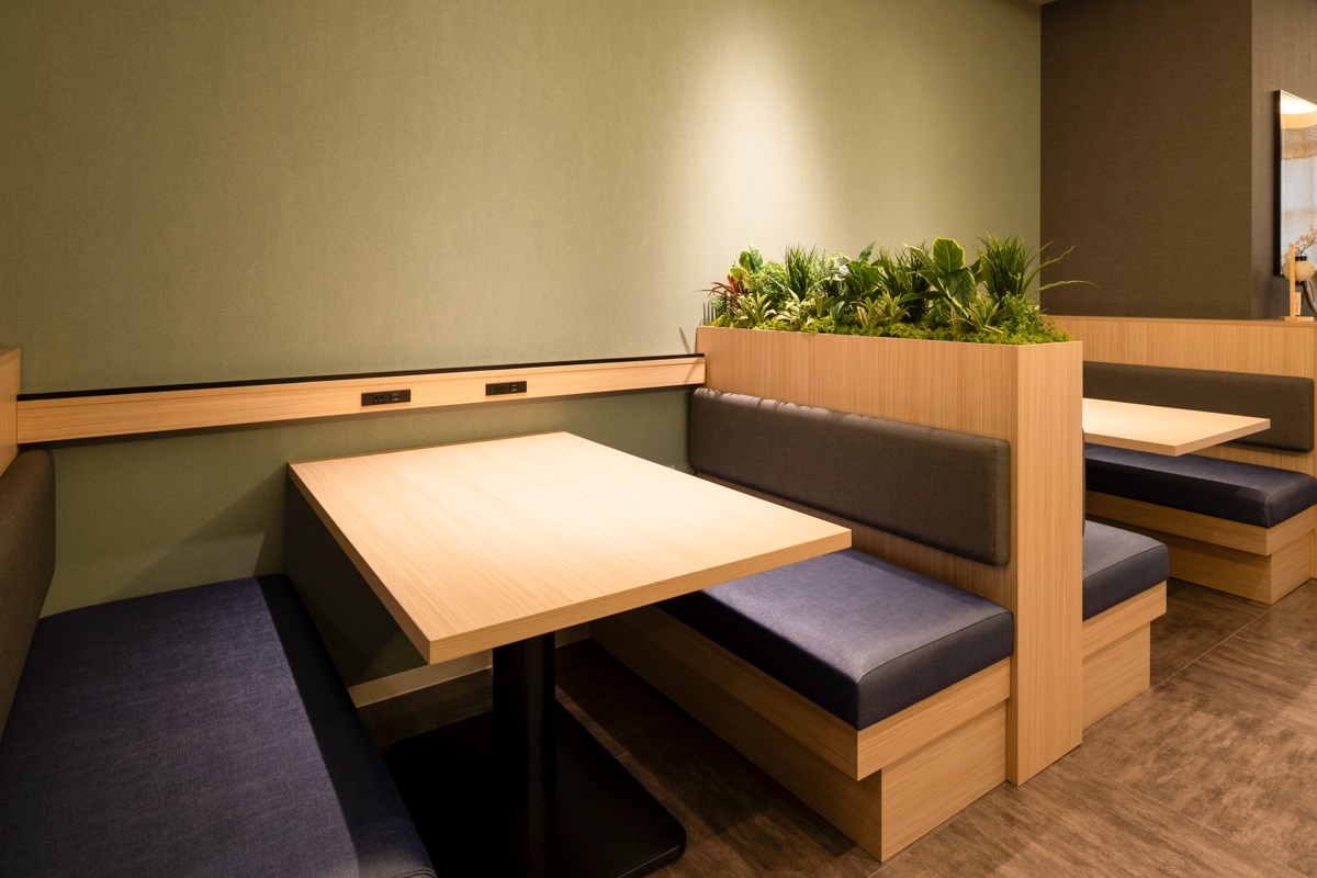 飲み放題のドリンクや、Free Wi-Fi・充電用コンセントも完備。出張先での時間も有効に活用できます。