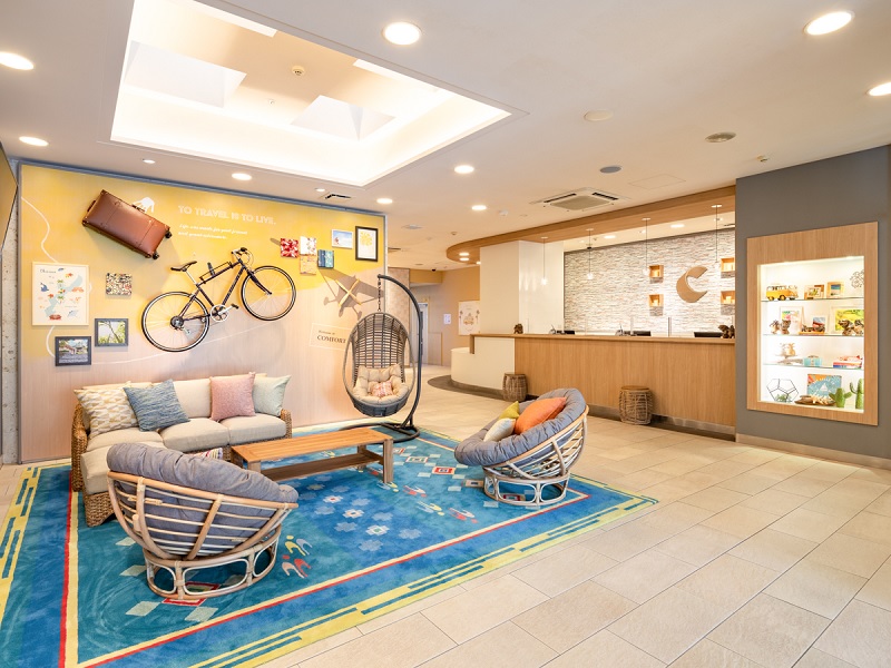 明るい雰囲気のフロントは、24時間対応です。ホテルの周辺情報に関してもお気軽にお声がけください。