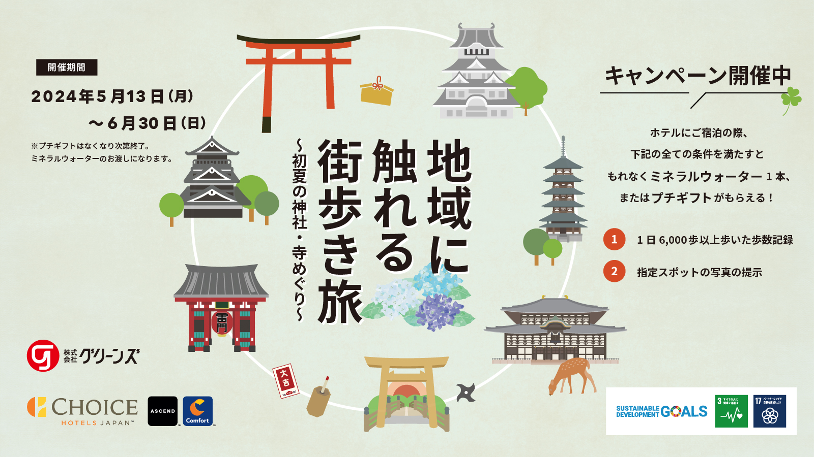 この度、株式会社グリーンズが運営する全国14店舗においてウォーキングを始めるきっかけ作りとして『歩くことが楽しくなる』企画をご用意しました!!今回のテーマは 「初夏の寺・神社めぐり」!全国各地の城や名所をお楽しみください。