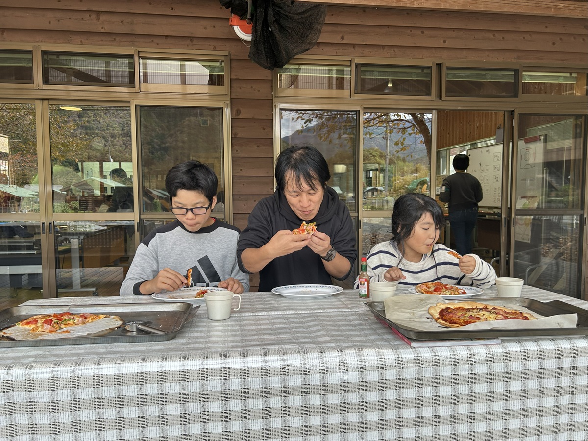出来上がったピザはお昼ご飯として、みんなで美味しくいただきました。