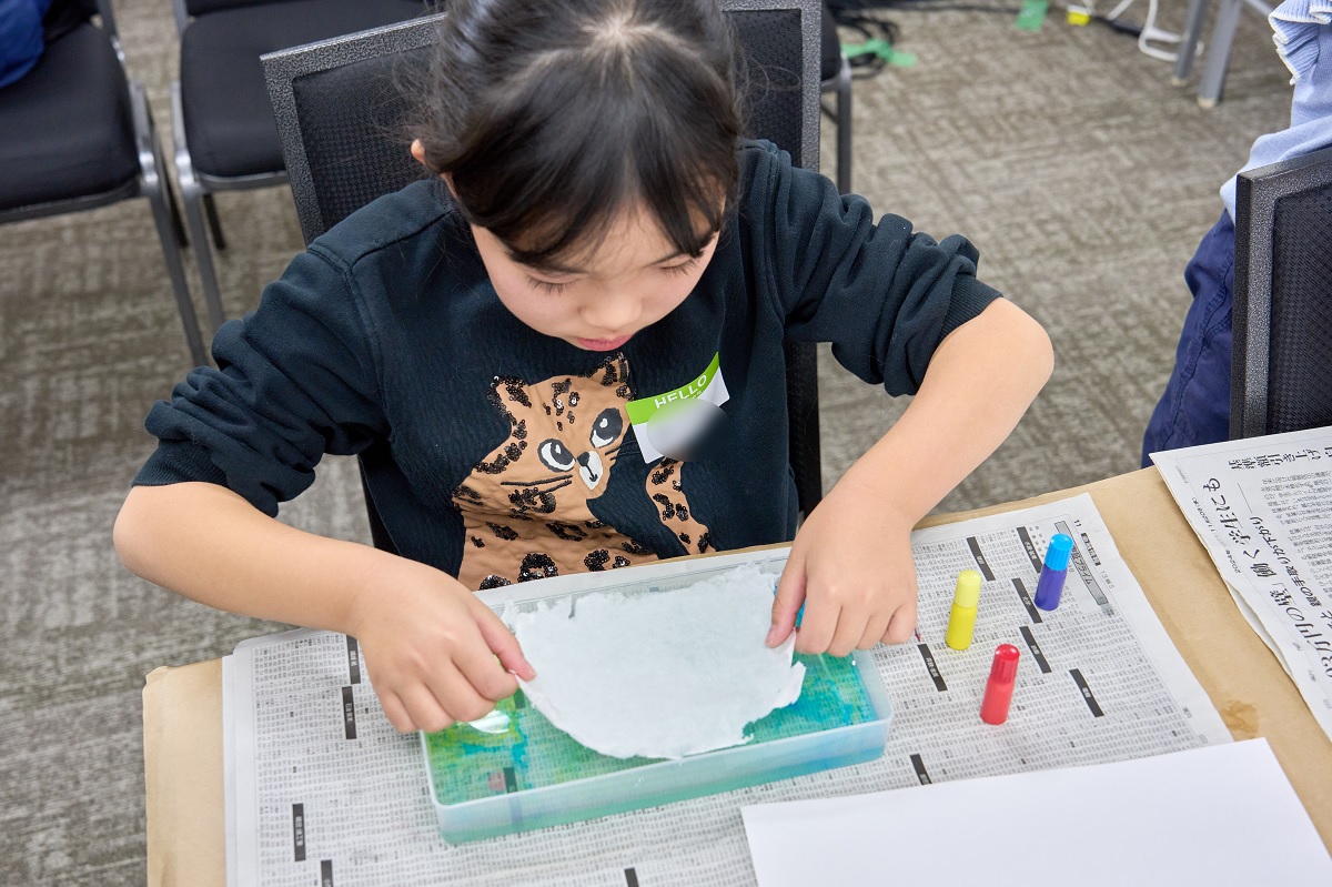 | 体験イベント内容 | 【バナナペーパー紙漉き】 バナナの茎の繊維とオーガニックパルプ(木の繊維)と水を混ぜ合わせ、漉き枠を使って手作業で紙を作ります。 【色付け作業】 紙漉きで作った紙を乾かし、その後色付け作業を行います。 【オリジナルグッズ作成】 色付けした紙を使って、オリジナルアイテムを作成します。 (作ったグッズはお持ち帰りいただけます) 前回のイベントの様子はこちら |