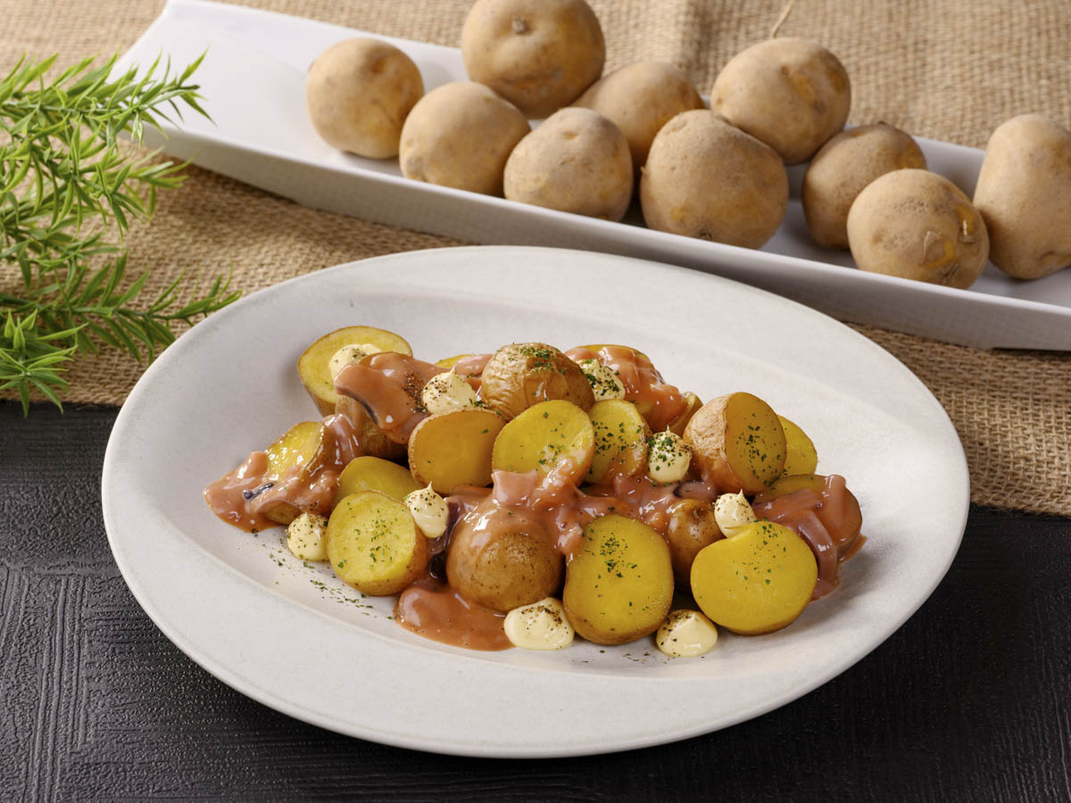 (右)ほくほくのじゃがいもに塩辛を添えたクセになる一品、"イカの塩辛じゃがバター"【釧路・帯広限定】