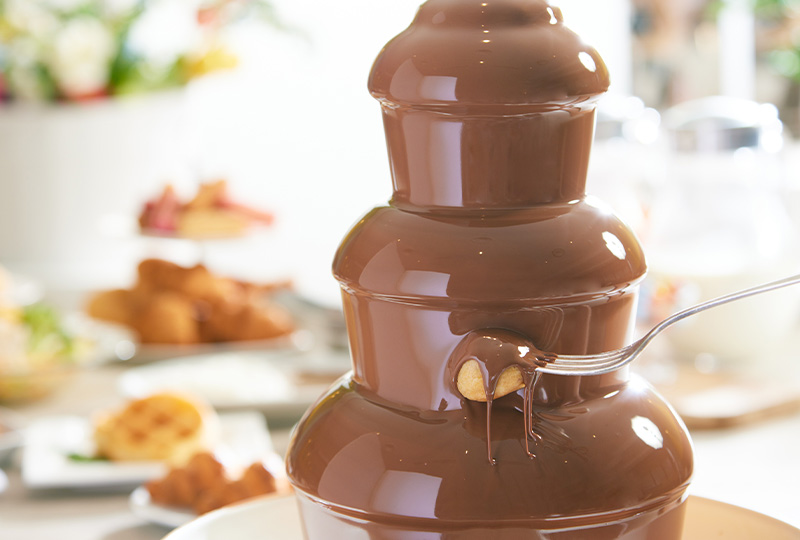お子様に人気のチョコレートファウンテン。 チョコレートをたっぷりとかけて。
